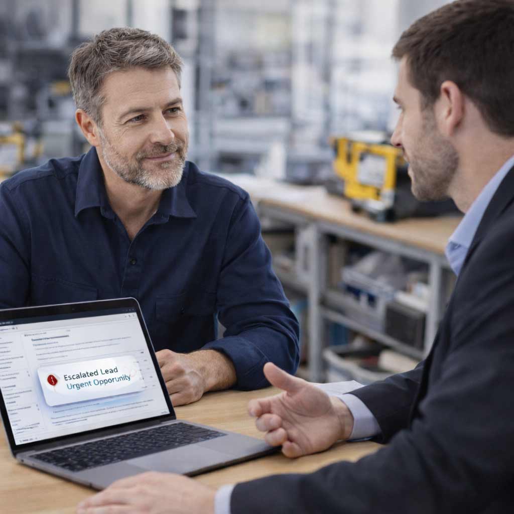 • Escalates urgent or high-value requests to a real person when needed